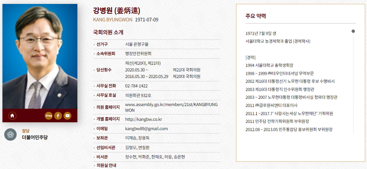 오늘은 제 21대 국회의원인 더불어민주당 소속 강병원 의원에 대해 알아볼게요. 지난 4월 15일 총선에서 당선되어 현재 임기중이며, 문재인 정부 청와대 행정관 출신입니다. 어떤 활동을 했는지 알아볼까요?